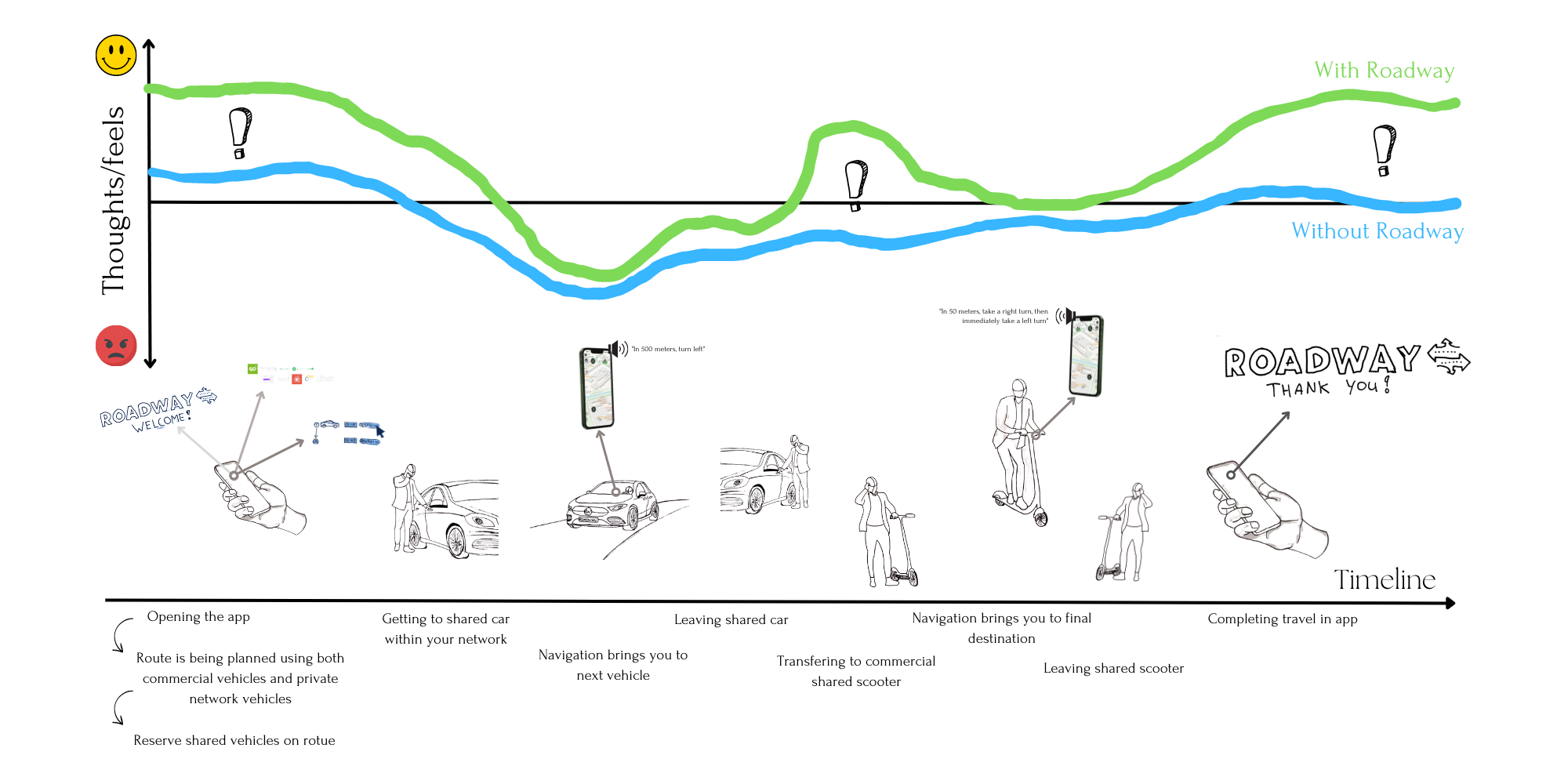 This is the commuter who is fed up with the overcrowded public transport. This person does not own a car, but does have some sort of network. This means that he/she could use Roadway to use this network to his/her advantage together with the other options regarding shared vehicles.