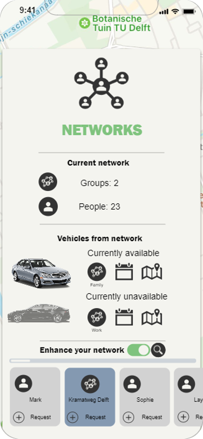 At Roadway, you have the ability to establish a network for sharing your or someone else's vehicle. New network connections can also be made.